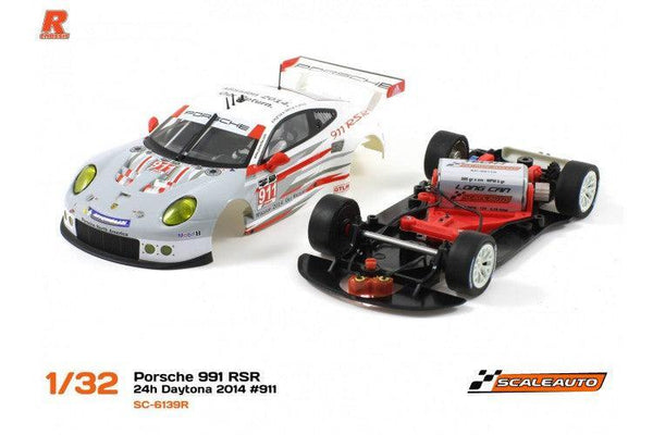 Scaleauto Porsche 991 RSR No.911 24h Daytona. 1/32 scale full detailed R-Series version powered by the 20,000rpm long-can motor in anglewinder motor mount, aluminium rear wheels, rear axle stopper, magnet and adjustable front axle ride height.